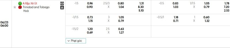 - Kèo châu Á Full Time: Trinidad & Tobago +1.5