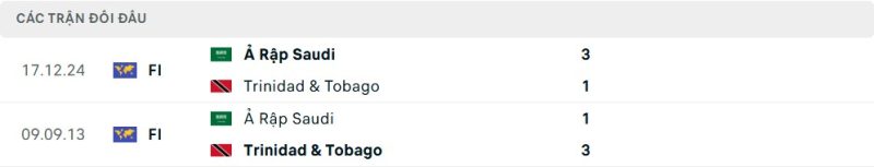 Thành tích đối đầu của Ả Rập Xê Út vs Trinidad & Tobago