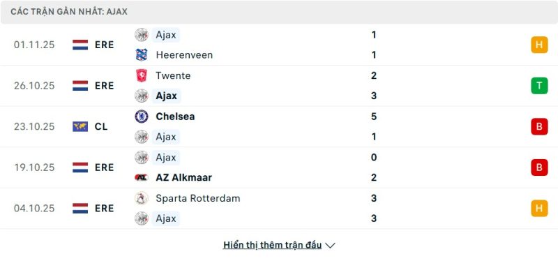 Ajax đang trải qua một trong những chiến dịch Champions League tồi tệ nhất lịch sử. Họ đang đứng bét bảng xếp hạng league phase ở vị trí thứ 36, khi chưa giành được bất kỳ điểm số nào sau 3 trận toàn thua. Đội bóng Hà Lan đã để thủng lưới tới 11 bàn và chỉ ghi được 1 bàn. Những thất bại nặng nề bao gồm 0-2 trước Inter, 0-4 trước Marseille và 1-5 ngay trên sân nhà trước Chelsea. Phong độ tại giải quốc nội của họ cũng rất đáng báo động với những trận thua và hòa thất vọng, cho thấy một cuộc khủng hoảng toàn diện.