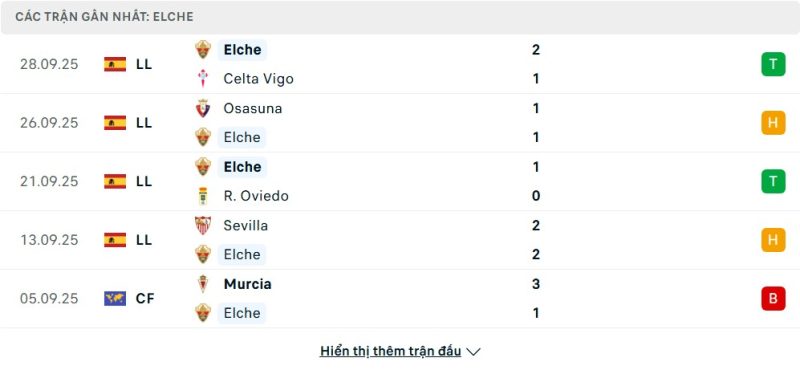 5 trận gần nhất của Elche: W-D-W-D-L
