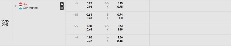 Bảng Tỷ lệ kèo bóng đá Áo vs San Marino