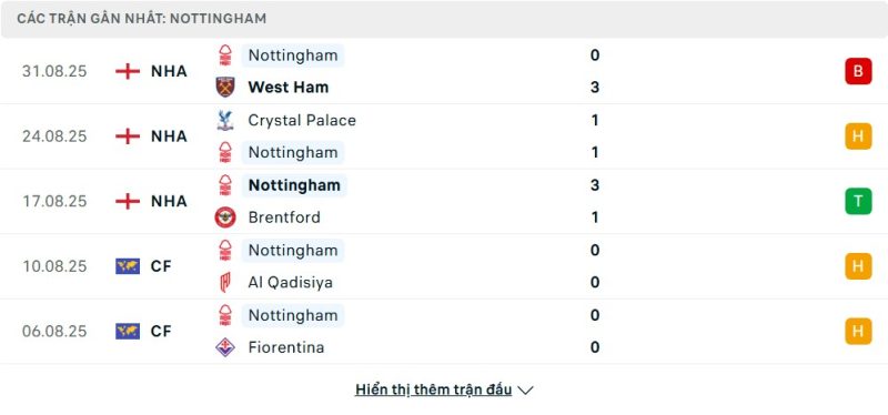 Bên kia chiến tuyến, Nottingham Forest đang có một vị trí an toàn ở giữa bảng xếp hạng, cụ thể là vị trí thứ 10 với 4 điểm. Phong độ của họ khá thất thường khi có 1 trận thắng, 1 trận hòa và 1 trận thua. Trận thắng 3-1 trước Brentford cho thấy khả năng tấn công của họ không thể xem thường, nhưng trận thua đậm 0-3 trước West Ham lại bộc lộ những yếu kém nơi hàng phòng ngự. Trận hòa 1-1 với Crystal Palace là một kết quả chấp nhận được, nhưng nó cho thấy Nottingham vẫn cần cải thiện nhiều để có thể tạo ra bất ngờ trước các đội bóng lớn.