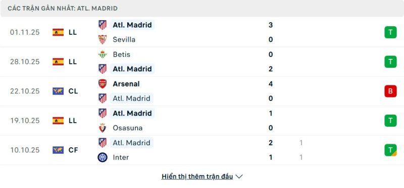 Atlético Madrid bước vào trận đấu này với phong độ trái ngược. Tại La Liga, họ đang thi đấu thăng hoa với những chiến thắng thuyết phục liên tiếp, bao gồm cả việc đánh bại Real Betis 2-0, Sevilla 3-0 và Osasuna 1-0. Tuy nhiên, bộ mặt của họ tại Champions League lại đáng lo ngại. Dù đã hủy diệt Eintracht Frankfurt 5-1, đội quân của HLV Simeone lại bất ngờ thảm bại 0-4 trên sân của Arsenal ở lượt đấu gần nhất. Với 3 điểm sau 3 trận, đại diện Tây Ban Nha đang rất cần một chiến thắng để cải thiện vị trí.