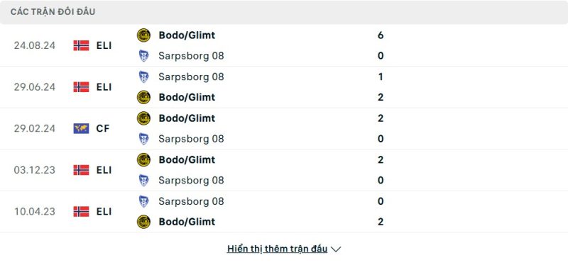 Thành tích đối đầu của Bodø/Glimt vs Sarpsborg