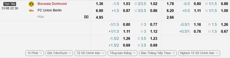 Bảng Tỷ lệ kèo bóng đá Borussia Dortmund vs Union Berlin