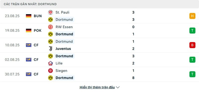 5 trận gần nhất của Borussia Dortmund: D-W-L-W-W