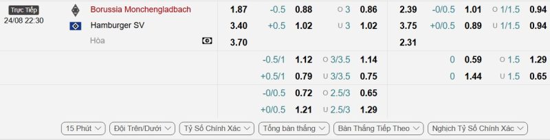 Bảng Tỷ lệ kèo bóng đá Borussia Mönchengladbach vs Hamburger SV