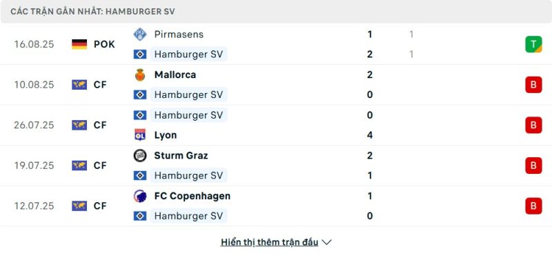 5 trận gần nhất của Hamburger SV: D-L-L-L-L