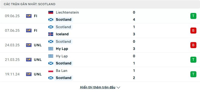 5 trận gần nhất của Scotland: W-L-L-W-W