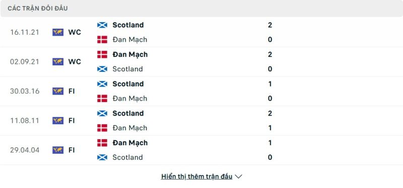 Thành tích đối đầu của Đan Mạch vs Scotland