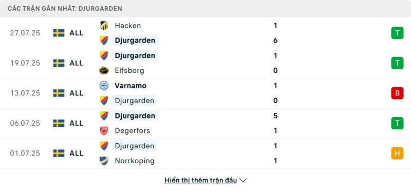 • Phong độ của Djurgårdens IF