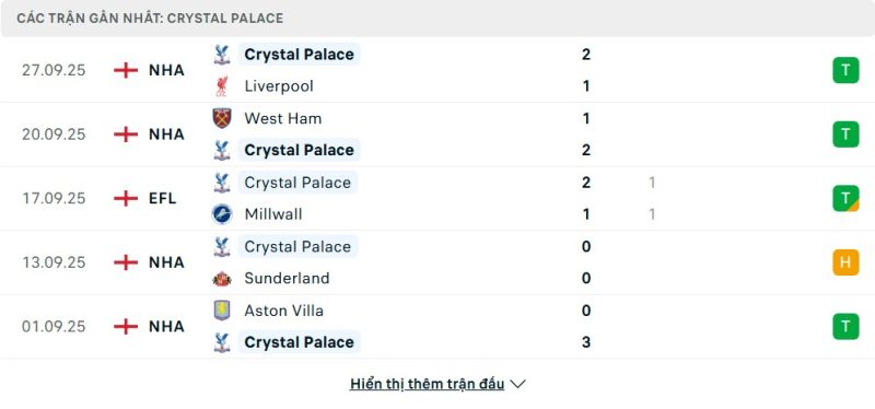 - Phong độ của Crystal Palace