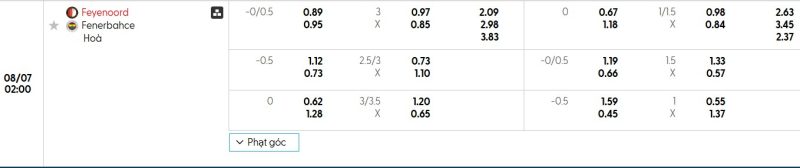 - Kèo tỷ số bóng đá hiệp 1: Feyenoord 1-2 Fenerbahçe