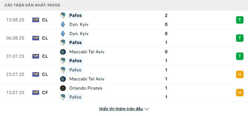 - Phong độ của Pafos FC