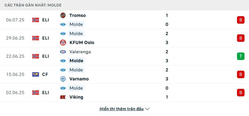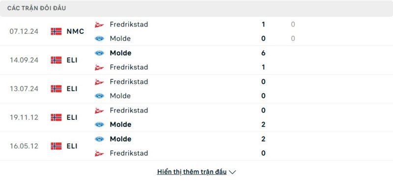 Thống kê phong độ gần đây Fredrikstad vs Molde