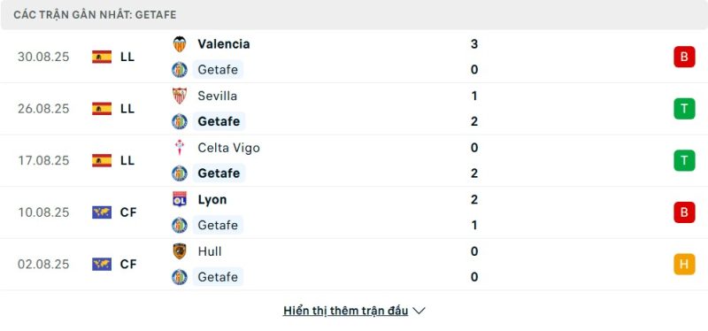 Thống kê phong độ gần đây Getafe vs Real Oviedo