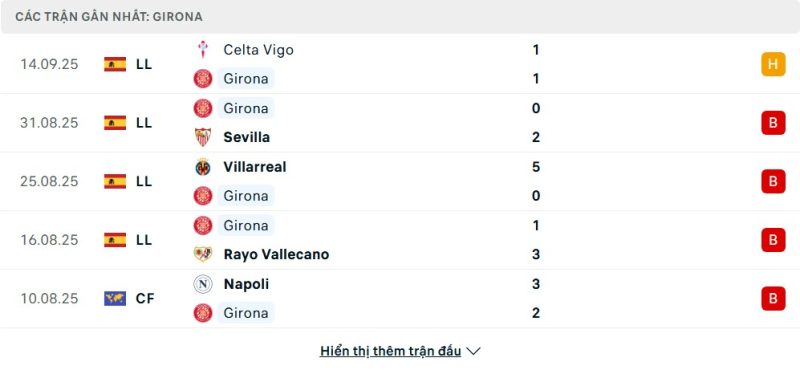 • Phong độ của Girona