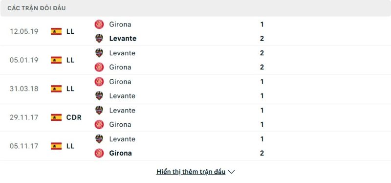 Thành tích đối đầu của Girona vs Levante