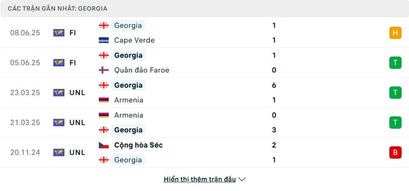 Thống kê phong độ gần đây Gruzia vs Thổ Nhĩ Kỳ