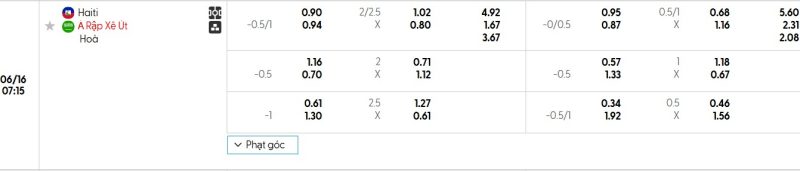 • Kèo tỷ số Full Time: Haiti 2-1 Ả Rập Xê Út