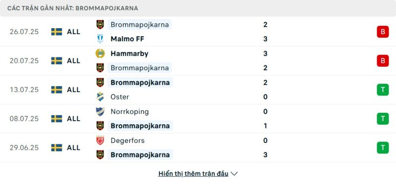 - Phong độ của IF Brommapojkarna