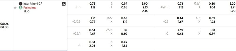 Bảng Tỷ lệ kèo bóng đá Inter Miami CF vs Palmeiras