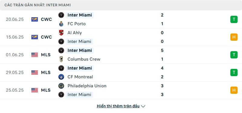 5 trận gần nhất của Inter Miami CF: W-D-W-W-D
