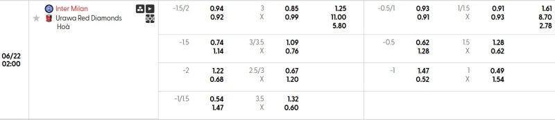 Bảng Tỷ lệ kèo bóng đá Inter vs Urawa Red Diamonds