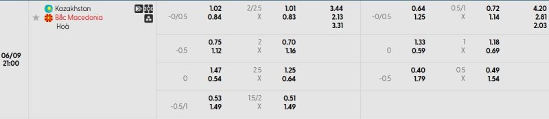 Bảng Tỷ lệ kèo bóng đá Kazakhstan vs Bắc Macedonia