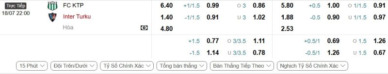 Bảng Tỷ lệ kèo bóng đá KTP vs Inter Turku