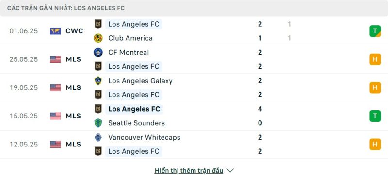 • Phong độ của Los Angeles FC