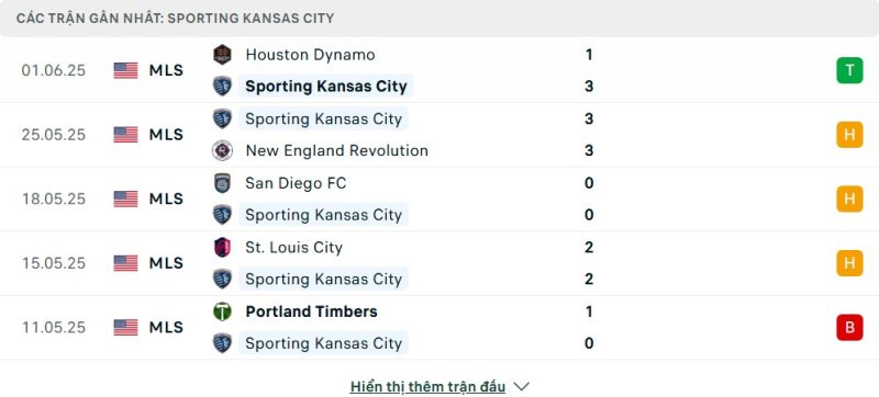5 trận gần nhất của Sporting Kansas City: W-D-D-D-L