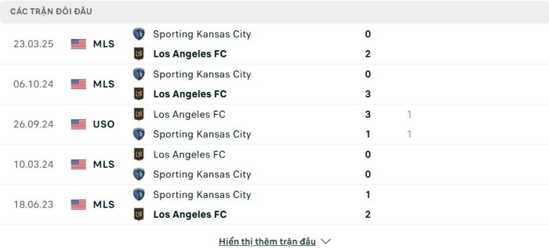 Thành tích đối đầu của Los Angeles FC vs Sporting Kansas City