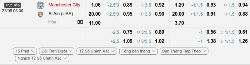 Bảng Tỷ lệ kèo bóng đá Manchester City vs Al-Ain