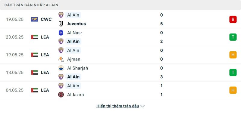 - Phong độ của Al-Ain