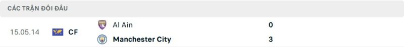 Thành tích đối đầu của Manchester City vs Al-Ain