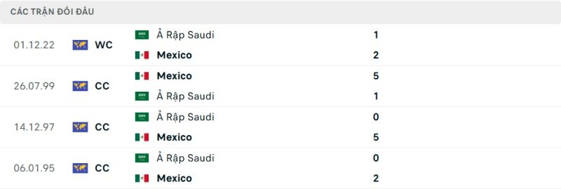 Thống kê phong độ gần đây Mexico vs Ả Rập Xê Út