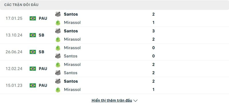 Santos cũng có dấu hiệu khởi sắc gần đây, khi giành 3 chiến thắng liên tiếp, trong đó có trận thắng trước Flamengo. Tuy nhiên, phong độ của Santos trước đó lại khá phập phù, với 2 trận thua liên tiếp trên sân khách. Họ đang đứng thứ 13 trên bảng xếp hạng, chỉ kém Mirassol 4 điểm, nhưng vẫn chưa cho thấy sự ổn định trong các chuyến hành quân. Nếu không duy trì sự tập trung cao độ, rất có thể Santos sẽ lại hụt hơi trước đối thủ đang có phong độ cao hơn.