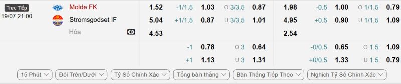 Bảng Tỷ lệ kèo bóng đá Molde vs Strømsgodset