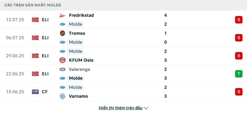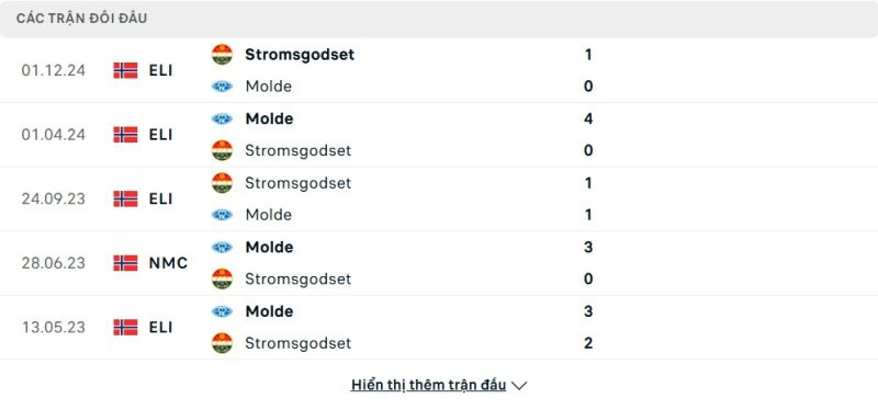Thống kê phong độ gần đây Molde vs Strømsgodset