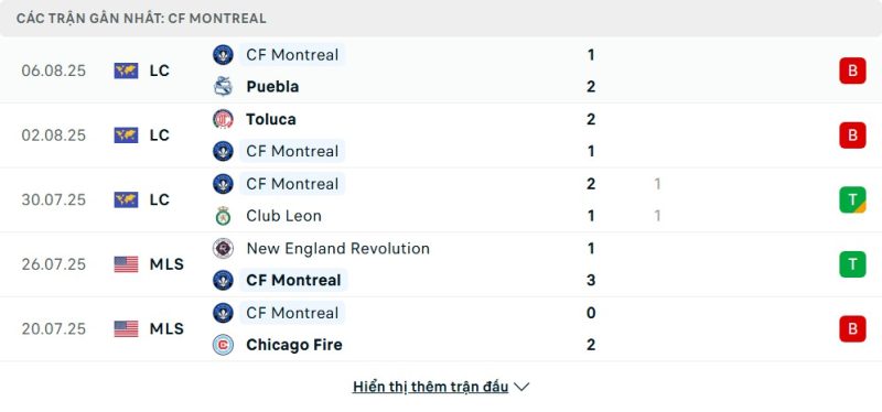 • Phong độ của CF Montréal