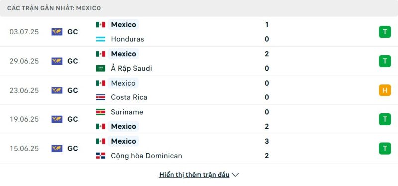 Thống kê phong độ gần đây Mỹ vs Mexico