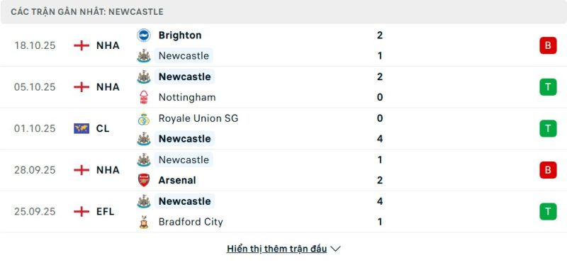 Newcastle United đang có phong độ khá tích cực thời gian gần đây. Họ vừa giành chiến thắng đậm 4-0 trước USG ở Champions League, qua đó có 3 điểm và tạm xếp thứ 11 trên bảng xếp hạng châu Âu. Ở Premier League, “Chích chòe” duy trì được sự ổn định với các kết quả khả quan như thắng Nottingham Forest 2-0 và hòa Bournemouth 0-0 trên sân khách. Dù vẫn còn những trận thua trước Arsenal hay Brighton, Newcastle cho thấy họ đang dần lấy lại sự tự tin, đặc biệt khi thi đấu tại St James’ Park, nơi họ thường xuyên thể hiện sức mạnh và tinh thần chiến đấu bền bỉ.