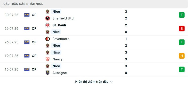 Nice vừa trải qua một mùa giải Ligue 1 tương đối thành công và đã có những trận đấu khởi động cho mùa giải mới. Mặc dù có trận thua trước St. Pauli, đội bóng này đã nhanh chóng lấy lại phong độ với những chiến thắng ấn tượng. Cụ thể, họ đã đánh bại Sheffield United 3-2 và giành chiến thắng 2-1 trước Feyenoord. Với 3 chiến thắng trong 5 trận gần nhất, Nice đang cho thấy sự ổn định và quyết tâm cao độ. Tuy nhiên, việc để hòa 3-3 trước Nancy cũng cho thấy hàng thủ của họ đôi lúc vẫn thiếu tập trung.