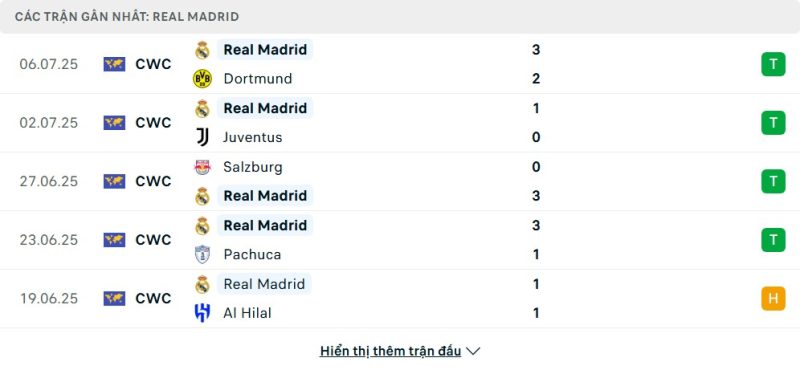 Bên kia chiến tuyến, Real Madrid cũng thể hiện phong độ rất đáng nể tại Club World Cup lần này. Sau khi vượt qua Juventus ở vòng 16, họ tiếp tục đánh bại Borussia Dortmund trong trận tứ kết với tỷ số 3-2. Trận đấu đó chứng kiến những khoảnh khắc lóe sáng của Gonzalo García và Kylian Mbappé, cùng sự ổn định ở tuyến giữa với Camavinga và Tchouaméni. Dưới sự dẫn dắt của HLV Xabi Alonso, Real Madrid cho thấy sự kết hợp giữa kinh nghiệm và sức trẻ, đồng thời luôn biết cách tận dụng cơ hội trong những tình huống bước ngoặt.
