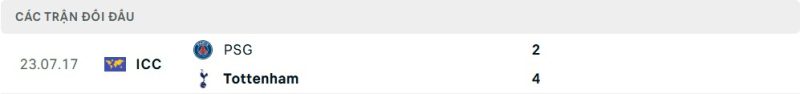 Thành tích đối đầu của Paris Saint-Germain vs Tottenham Hotspur