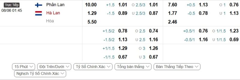 Bảng Tỷ lệ kèo bóng đá Phần Lan vs Hà Lan