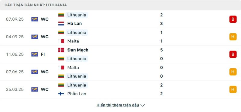 5 trận gần nhất của Lithuania: L-D-L-D-D