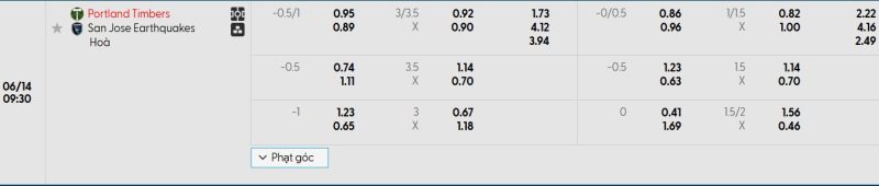 Bảng Tỷ lệ kèo bóng đá Portland Timbers vs San Jose Earthquakes