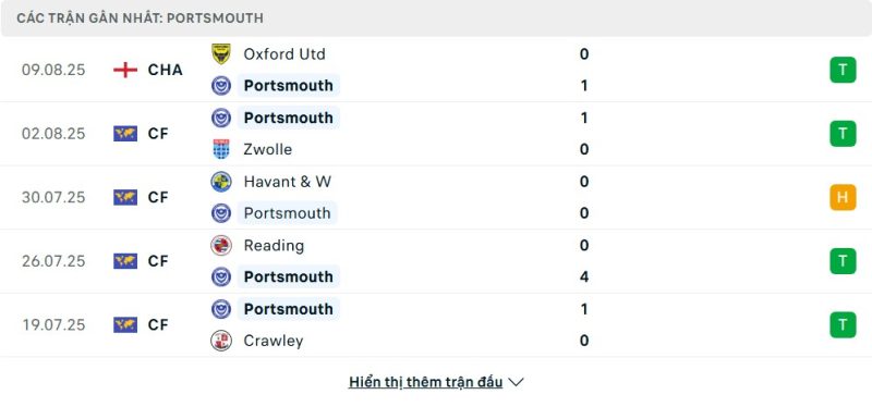 Portsmouth đang thể hiện phong độ ấn tượng trong thời gian gần đây. Ở loạt trận giao hữu hè, họ thắng liền nhiều đối thủ như Farnborough 5-0, Reading 4-0 hay Woking 2-0, cho thấy sự chuẩn bị kỹ lưỡng trước mùa giải mới. Bước vào Championship, Portsmouth khởi đầu bằng việc giành chiến thắng 1-0 trước Oxford United, leo lên nhóm đầu bảng. Hàng thủ giữ sự tập trung tốt, trong khi hàng công biết cách tận dụng cơ hội để định đoạt trận đấu.
